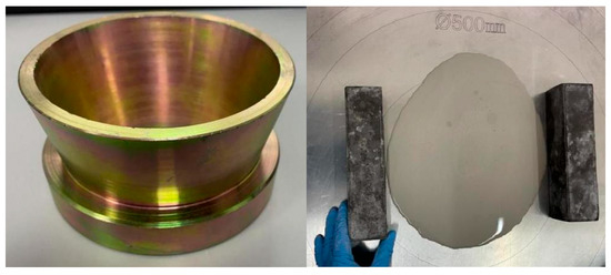 Pour the freshly prepared slurry into a truncated conical mold and use a spatula to scrape off any excess slurry on the surface, ensuring that the top of the slurry is level with the mold. Lift the truncated conical mold vertically so that the slurry can freely fall onto the collapse plate. After the slurry has settled, measure its horizontal and vertical diameters. The average of these diameters represents the initial flowability of the slurry. Measurements should be collected for each group of three specimens and averaged. As shown in Figure 2, the flow velocity is measured using the truncated cone method.