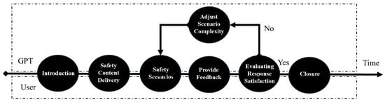 - Adjust Scenario Complexity and Introduce New Scenarios: Depending on the user’s level of understanding, GPT adjusted the complexity of the safety scenarios. This iterative process of scenario presentation and feedback continued until the user consistently demonstrated satisfactory responses, ensuring a deep and practical understanding of the safety topics covered.