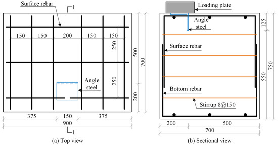 Figure 2 shows the rebar configuration of the angle steel shear lug specimen, which is consistent with that of the H-shaped steel shear lug specimens.