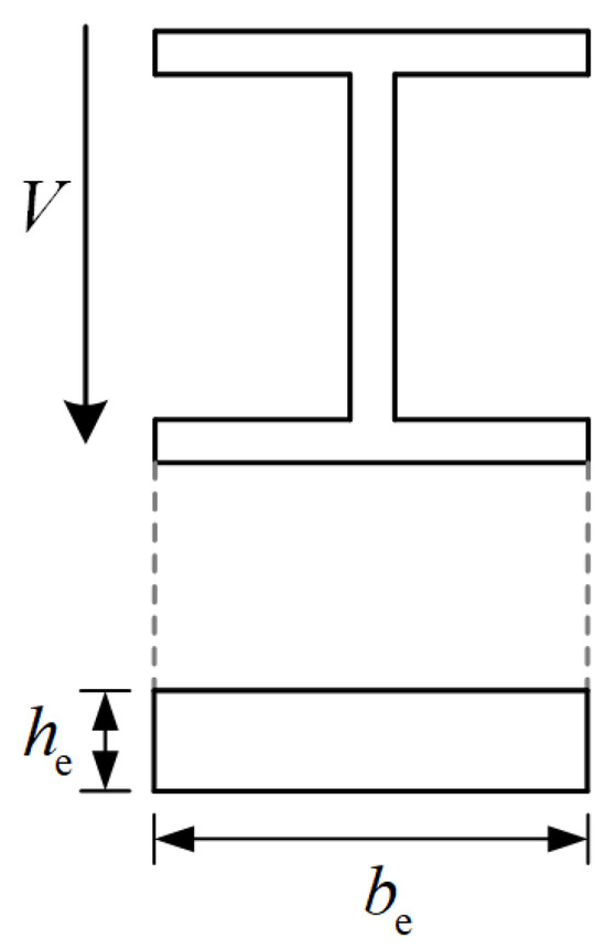 where y is a coefficient determined by regression using test data; and are the equivalent thickness and width of the shear lug based on the principle of equal moments of inertia, respectively, and the equivalent way of the H-shaped steel shear lug is shown in Figure 16.