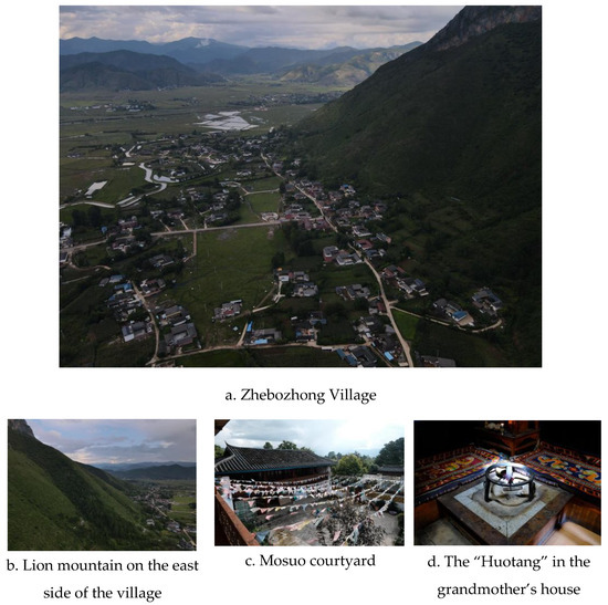 First, Mosuo villages are mostly built against mountains, located at the foot of mountains, not occupying flat cultivated land [25]. The Mosuo people have a strong natural awareness of restraining greed; they do not occupy natural resources but engage in farming, raising livestock, and hunting according to the terrain characteristics of mountains and valleys, forming a dispersed living pattern. This living style integrates each family with the natural environment, reflecting the Mosuo people’s adaptation to and respect for nature. Second, Mosuo religious beliefs play a key role in their concepts. They initially believed in Dabaism and later were influenced by Tibetan Buddhism, forming diverse and complex religious concepts. Nature is regarded as sacred, closely connected with deities and ancestors, and religious ceremonies are held in natural spaces, strengthening the Mosuo people’s spiritual connection with nature.