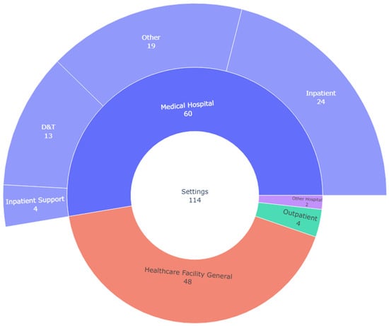 Included articles by healthcare setting and sub-setting (n = 114).