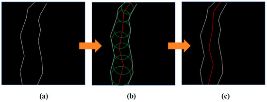 The crack skeleton is the fundamental structure of crack spots, representing the span of the crack. Two methods for image skeletonization are the medial axis transform (MAT) [34] and the Zhang–Suen algorithm [35], each with distinct characteristics and applicable scenarios. The MAT algorithm is reliant on the geometric properties of the image, thereby providing a more accurate medial axis representation. It is typically employed in conjunction with distance transformations to ascertain distances from skeleton points to the original boundary. Conversely, the Zhang–Suen algorithm exhibits reduced computational complexity, conserves resources, and facilitates the refinement of the crack skeleton. In this regard, we utilize the MAT algorithm for the accurate extraction of the crack skeleton.