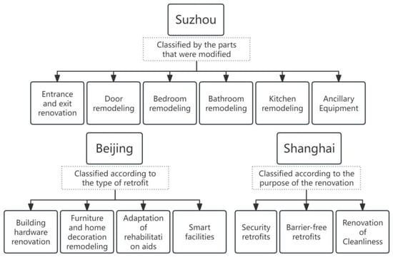 - Wang, X. Design Cases and Strategies for Age-Appropriate Renovation of Urban Old Residential Suites. Urban Hous. 2015, 06, 36–41. [Google Scholar]