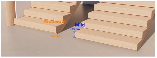 | The height of each step of the staircase | ≤35 mm | ≤22 mm | eliminate steps | Reduced knee angles limit leg lifts |