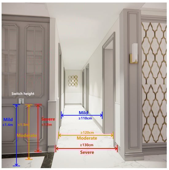 | Specific Location | Doorsill | Number of Handrails | The Width of the Space | The Size of Each Opening | Corridor Length | Height Position of the Light Switch | Bed Height | The Height of the Washbasin | Anti-Slip Friction on the Ground | The Height of Each Step of the Staircase | |