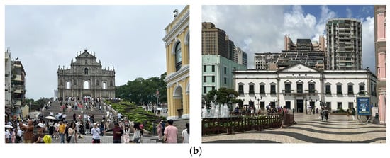 The study area for this research was the Historic Center of Macau. The Historic Center of Macau is a historical district centered around the old town, consisting of twenty-two buildings and eight adjacent squares, all located in the Macau Peninsula. In 2005, the Historic Center of Macau was inscribed as a UNESCO World Heritage Site. It is the oldest, largest, best-preserved, and most concentrated architectural ensemble of Eastern and Western styles in China. It preserves a glorious history of over 400 years of cultural exchange between China and the West (Figure 2).