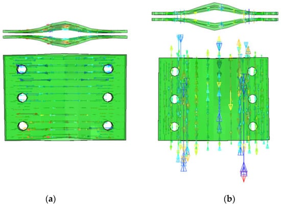 Stress distribution of connectors in nodal domain. (a) Distribution of horizontal stress S11. (b) Vertical stress S22 distribution.