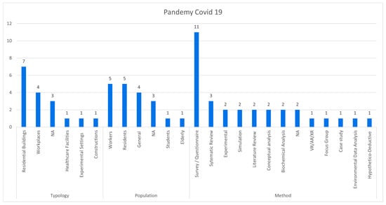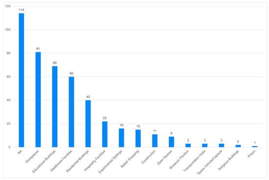 This structured and multi-dimensional analysis allowed the identification of user orientations, spatial coverage, typological patterns, and the extent to which specific biophilic principles were applied. It complemented the bibliometric results by offering qualitative depth, revealing underexplored areas, and highlighting methodological and contextual gaps within the literature.