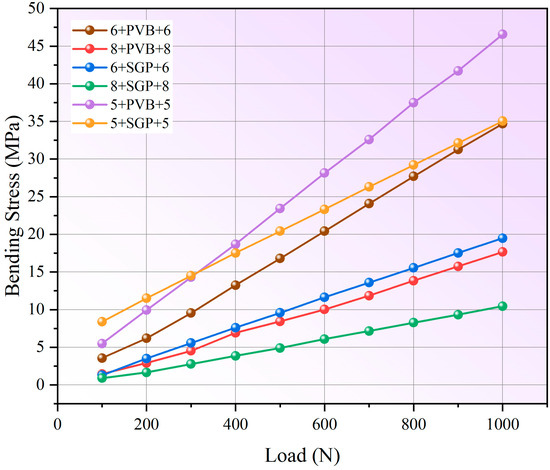 The plot of bending stress against corresponding load for polymeric laminated glass.