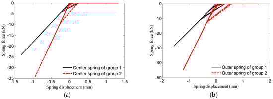 Vertical hysteretic curves of springs. (a) Central springs; (b) Outer springs.