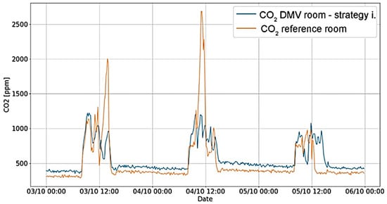 CO2 concentrations were measured in the room using Strategy I (ASHRAE 62) in comparison to the reference room that was closer [35].