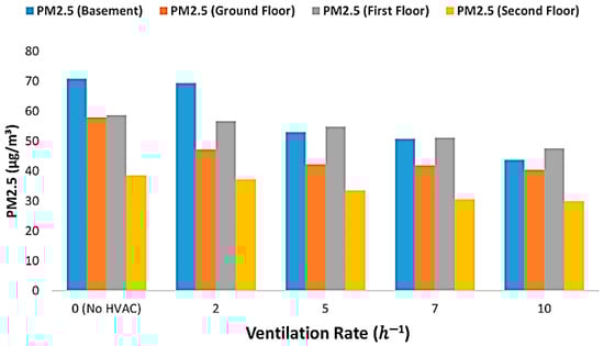 Results of the CONTAM PM simulation at different ventilation rates [46].