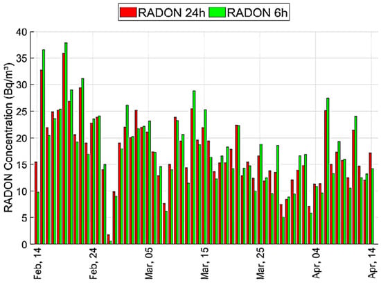 The radon concentration in the classroom between 14 February and 14 April 2024 [50].