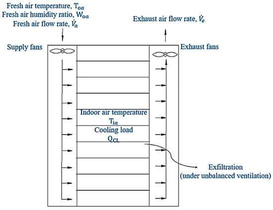 Shi and Li (2020) [32] investigated the influence of mechanical ventilation rates on infiltration in buildings equipped with multilayer windows. They developed a mathematical model to describe the relationship between mechanical ventilation and infiltration rates. The model was validated through field experiments conducted in a large indoor space. The validated approach enables determination of the minimum mechanical ventilation rate required to prevent outdoor air infiltration in buildings with multilayer windows. The relationship between mechanical ventilation and infiltration depends on several architectural parameters, including the window’s aspect ratio (width-to-height), vertical spacing between window units, and the number of window layers.