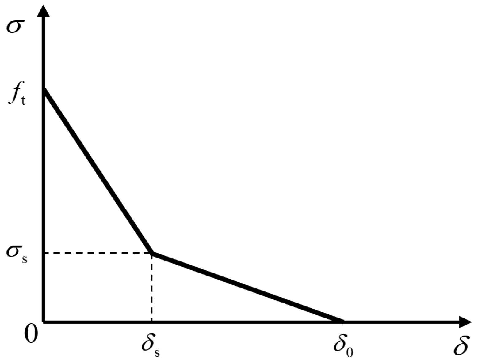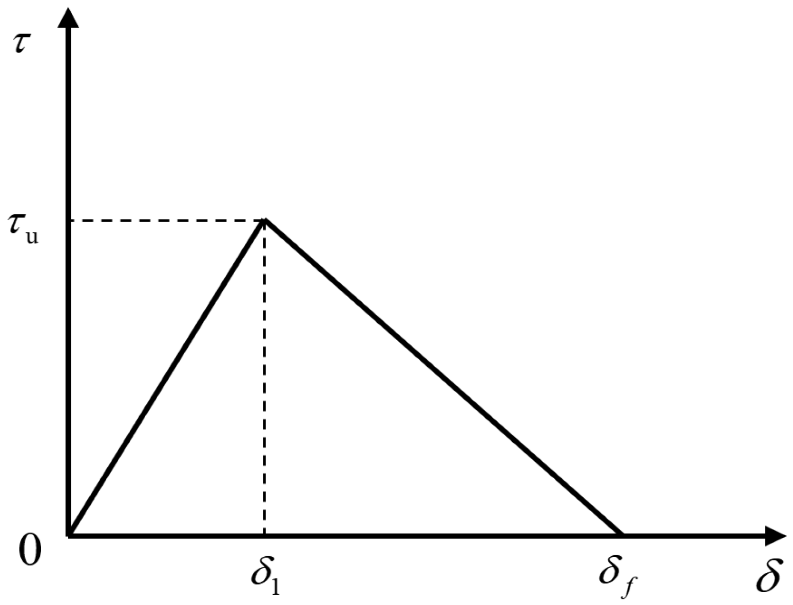 - Calculate the stress distribution in the cohesive and interfacial bonding zone according to Equations (10) and (11).