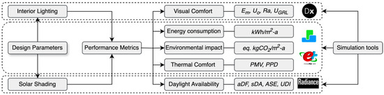 The overall workflow of the study is illustrated in Figure 1, which outlines the data collected from each simulation tool during the analysis. Table 1 provides a summary of the key simulation inputs, performance metrics, and regulatory benchmarks adopted in this research.