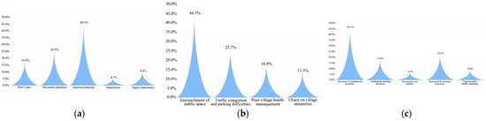 However, the accelerated urbanization process across China has triggered large-scale rural reconstruction projects, resulting in significant alterations to traditional village architectural structures and, in severe cases, irreversible damage [8]. This predicament stems from an overemphasis on modernizing material infrastructure while neglecting balanced development between social institutional frameworks and cultural heritage preservation. Such development patterns have generated three core issues: compromised spatial integrity, degradation of vernacular landscapes, and intensified rural population outflow. These problems have further eroded villagers’ sense of identity and belonging toward rural public spaces. In preserving traditional villages and their cultural heritage, spatial morphology serves as a crucial medium for sustaining regional culture [9,10]. The spatial form of traditional villages is collectively shaped by overall spatial layout, architectural spaces, and street network configurations [11,12]. Morphological studies provide fundamental foundations for conservation and development planning of traditional villages [13]. Among these elements, village public spaces—encompassing street networks and communal architectural areas—function simultaneously as social arenas for community interaction and primary physical vessels for traditional culture [14]. Materially, they constitute the fundamental framework for production and daily life; culturally, they evolve into tangible containers of collective memory, acting as vital catalysts that stimulate and sustain village vitality.