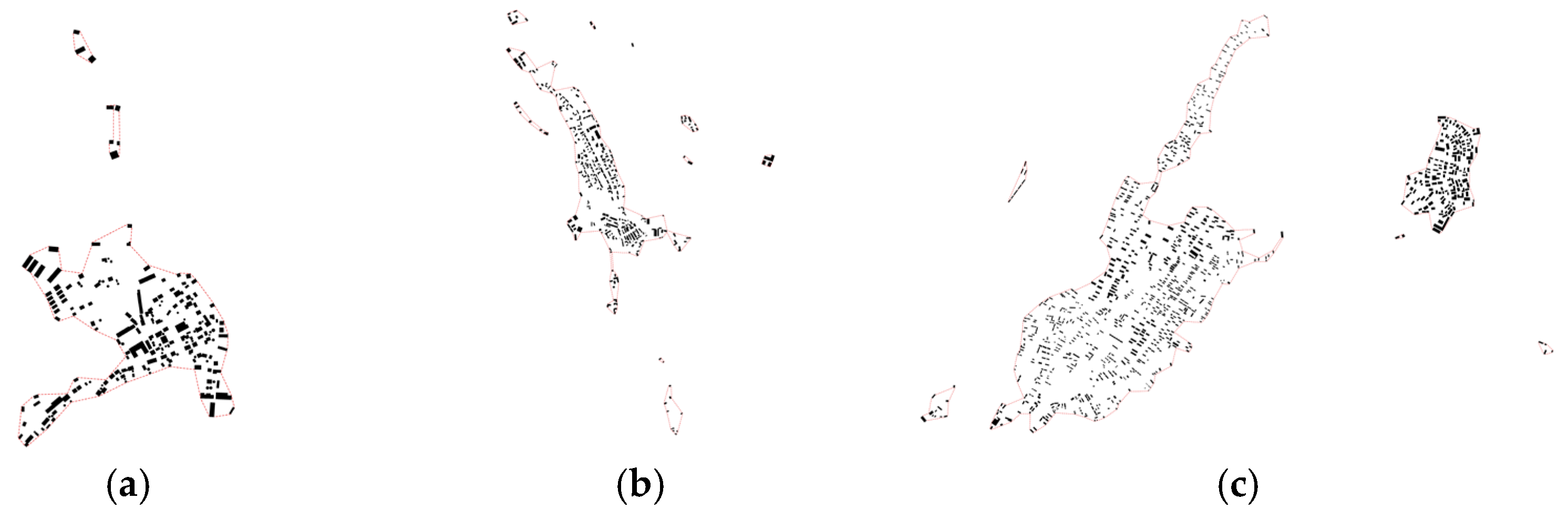 3.2.1. Analysis of Public Space Layout Compactness