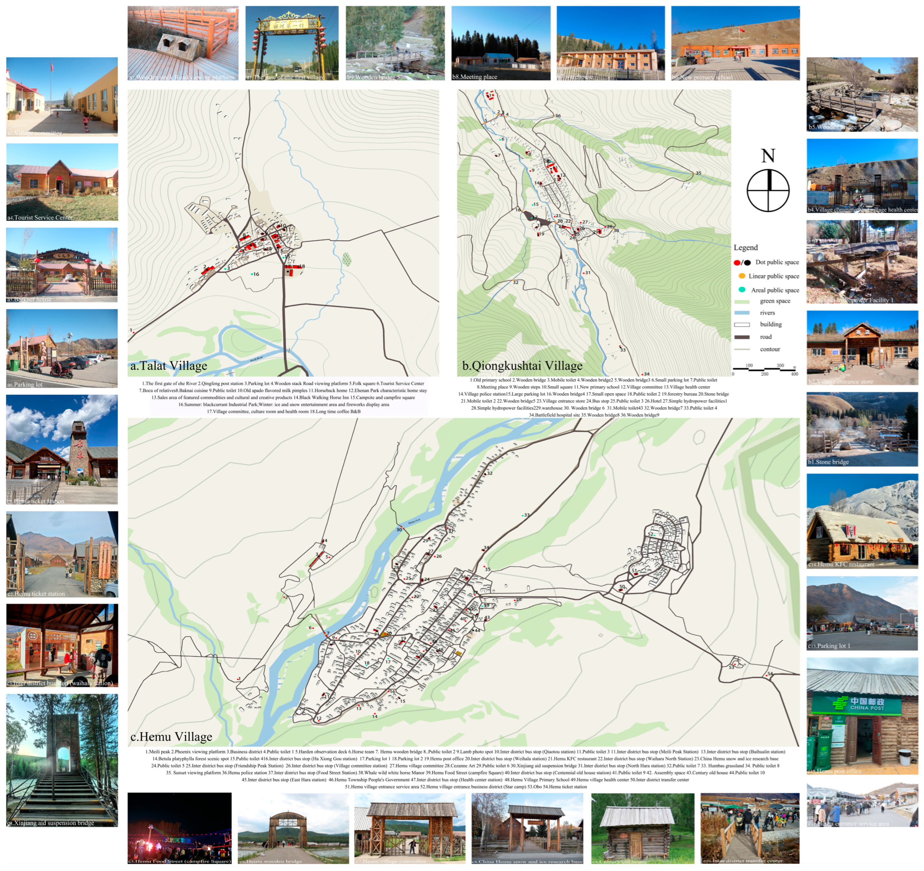 - Case Study Description: Through literature review and field investigations, the study locations and public space distributions within each village were identified. Fundamental data collection established a foundational database for subsequent model development.
