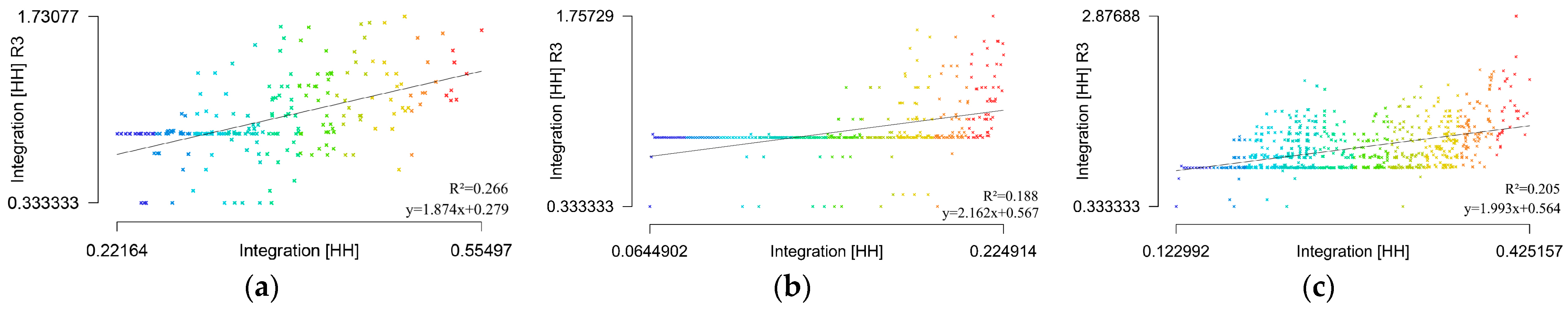 | where R2 is the intelligibility; I(3) is the local integration value at step n = 3; I′(3) is the average of the 3-step integration; I(n) is the global integration value; and I′(n) is the average of the global integration. | ||