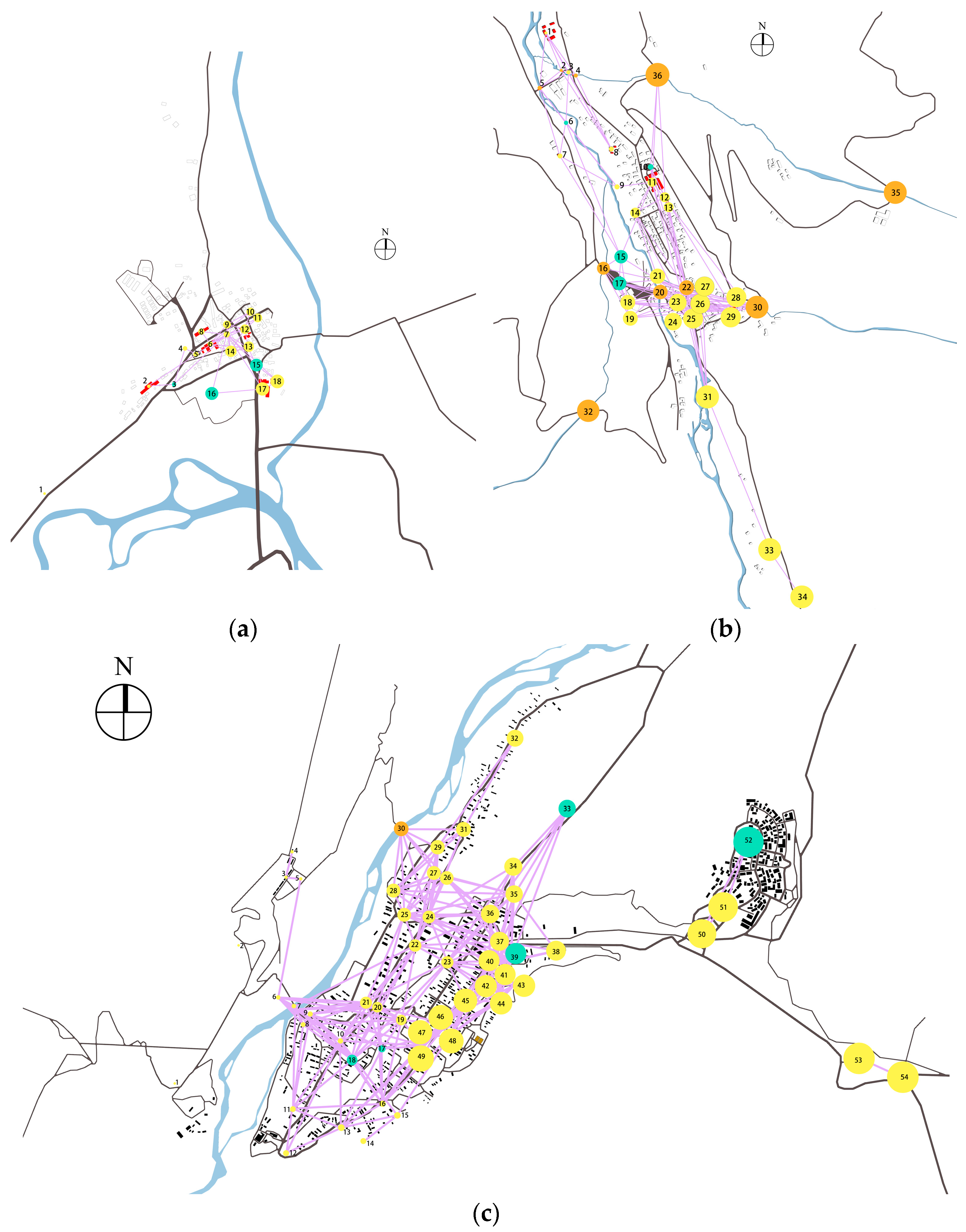- Narrow perspectives: Heritage studies relying solely on space syntax as a quantitative method tend to focus exclusively on street network characteristics while neglecting the relationship between streets and surrounding elements, particularly overlooking how villagers’ behaviors interact with and influence public spaces.