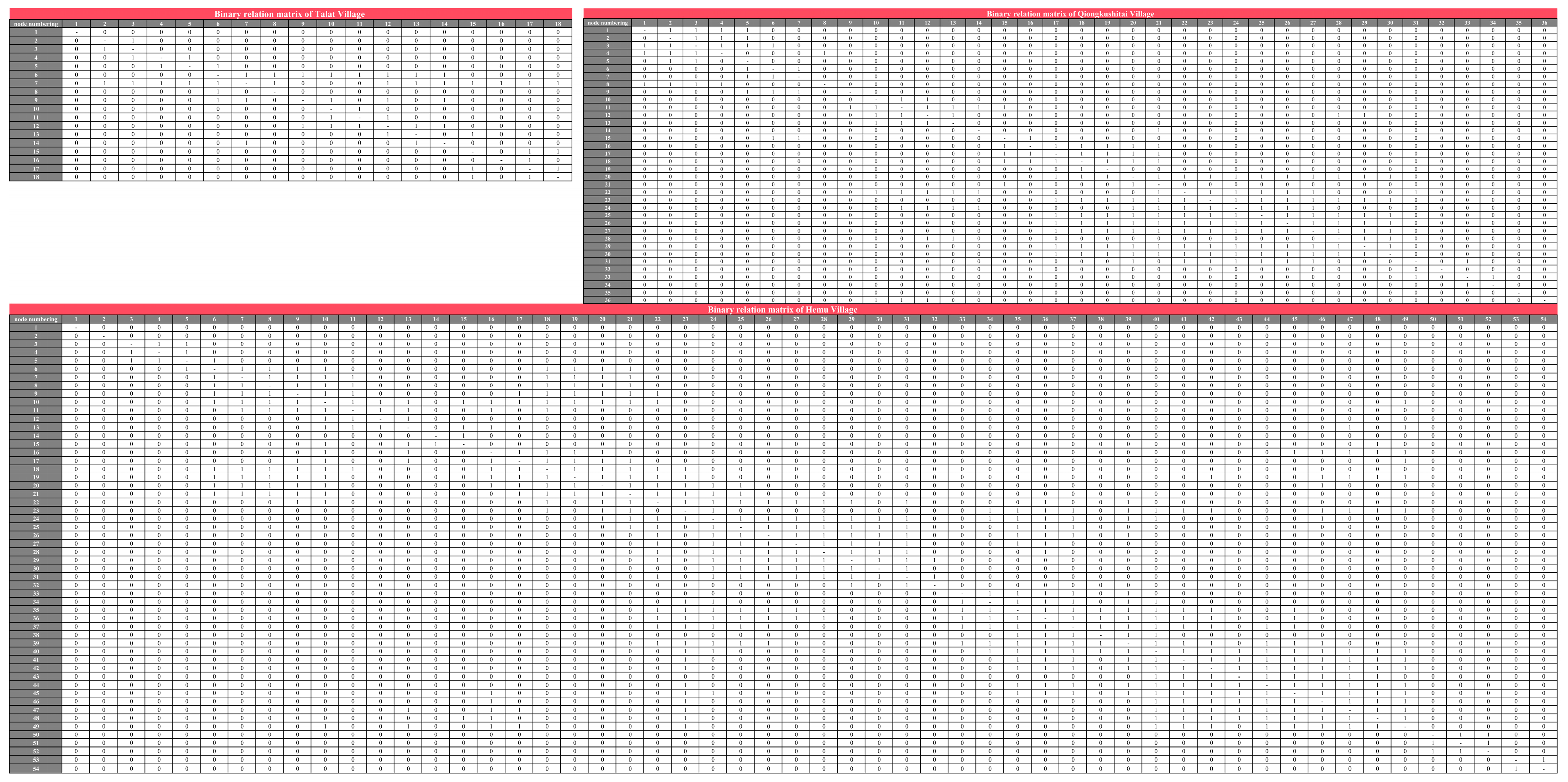 | Cliques | A higher number of cliques indicates a more fragmented village structure. Nodes present in multiple cliques serve as bridges connecting different cliques, representing key intersections in the village. |