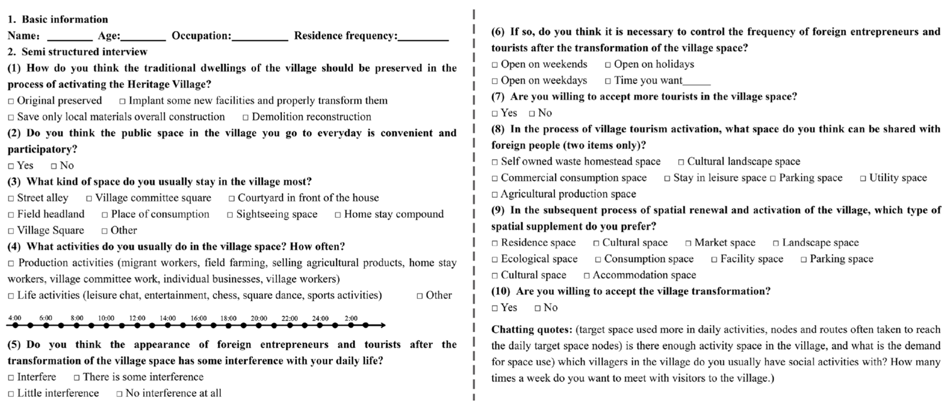 - The research will expand the sample size for resident-tourist behavior surveys, collect longitudinal data on villagers’ daily behaviors across different periods, and gather tourist behavior data during peak and off-peak seasons. The study proposes future implementation of GPS tracking to better understand village migration patterns and related behaviors. This will facilitate the development of a research paradigm for spatiotemporal behavior patterns in ethnic villages and explore viable pathways for rural revitalization in these communities.
