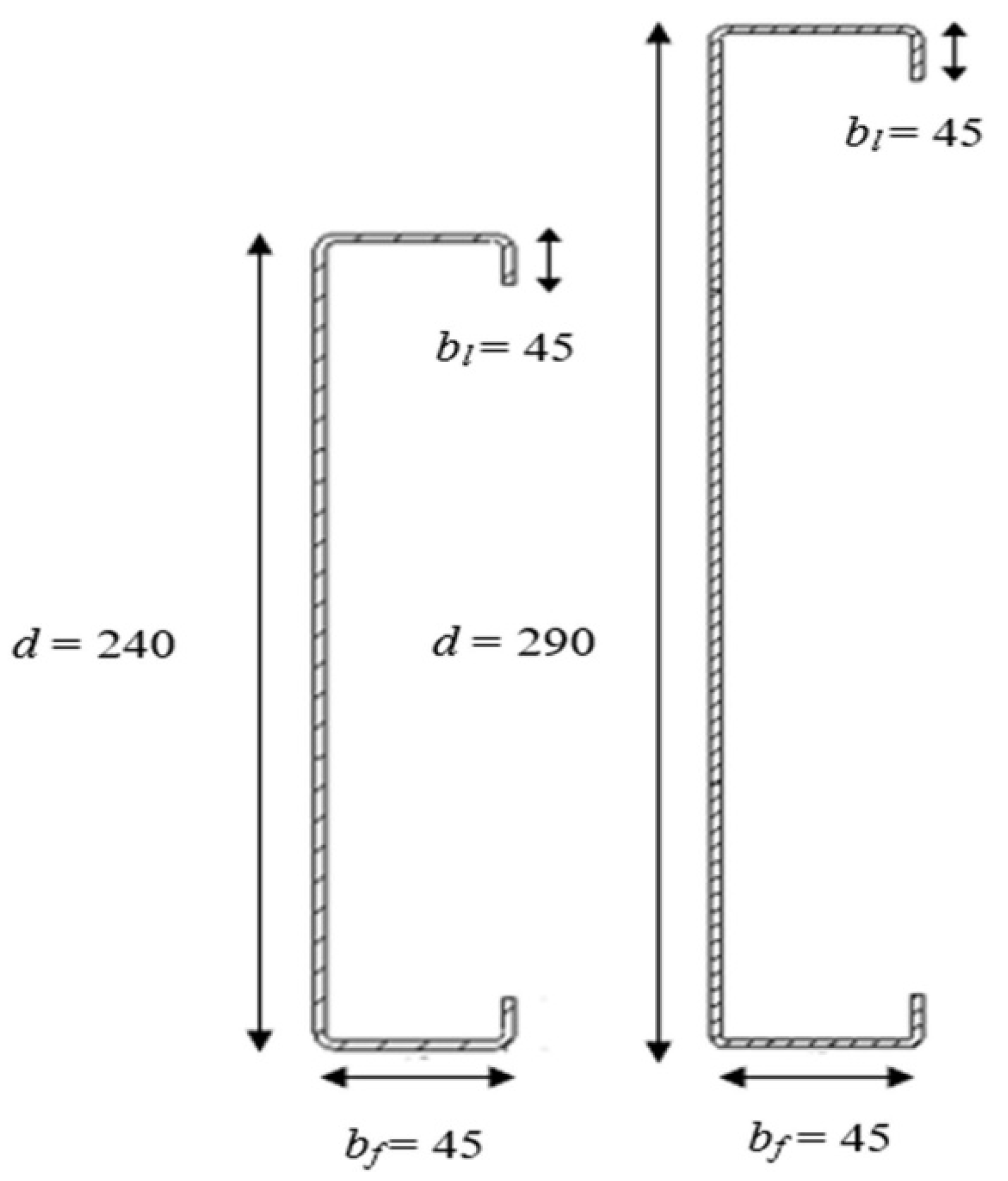 - AISI S100-16 2016; North American Specification for the Design of Cold-Formed Steel Structural Members. AISI (American Iron and Steel Institute): Washington, DC, USA, 2016.