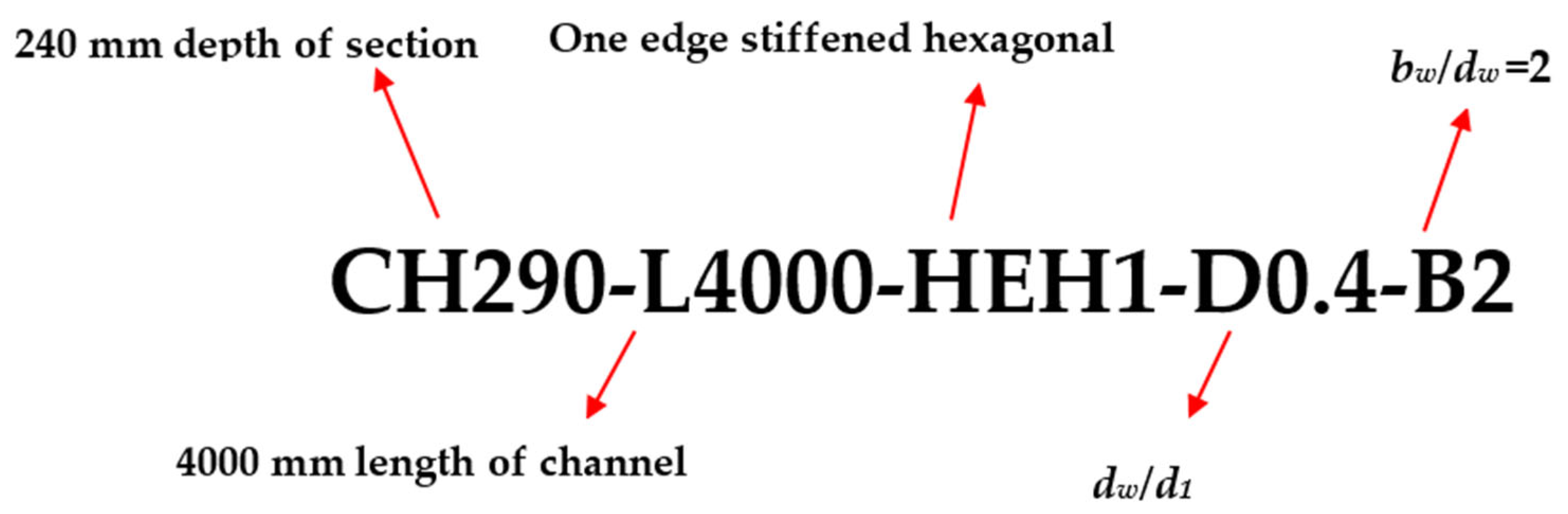 - Wang, L.; Young, B. Design of cold-formed steel channels with stiffened webs subjected to bending. Thin-Walled Struct. 2014, 85, 81–92. [Google Scholar] [CrossRef]