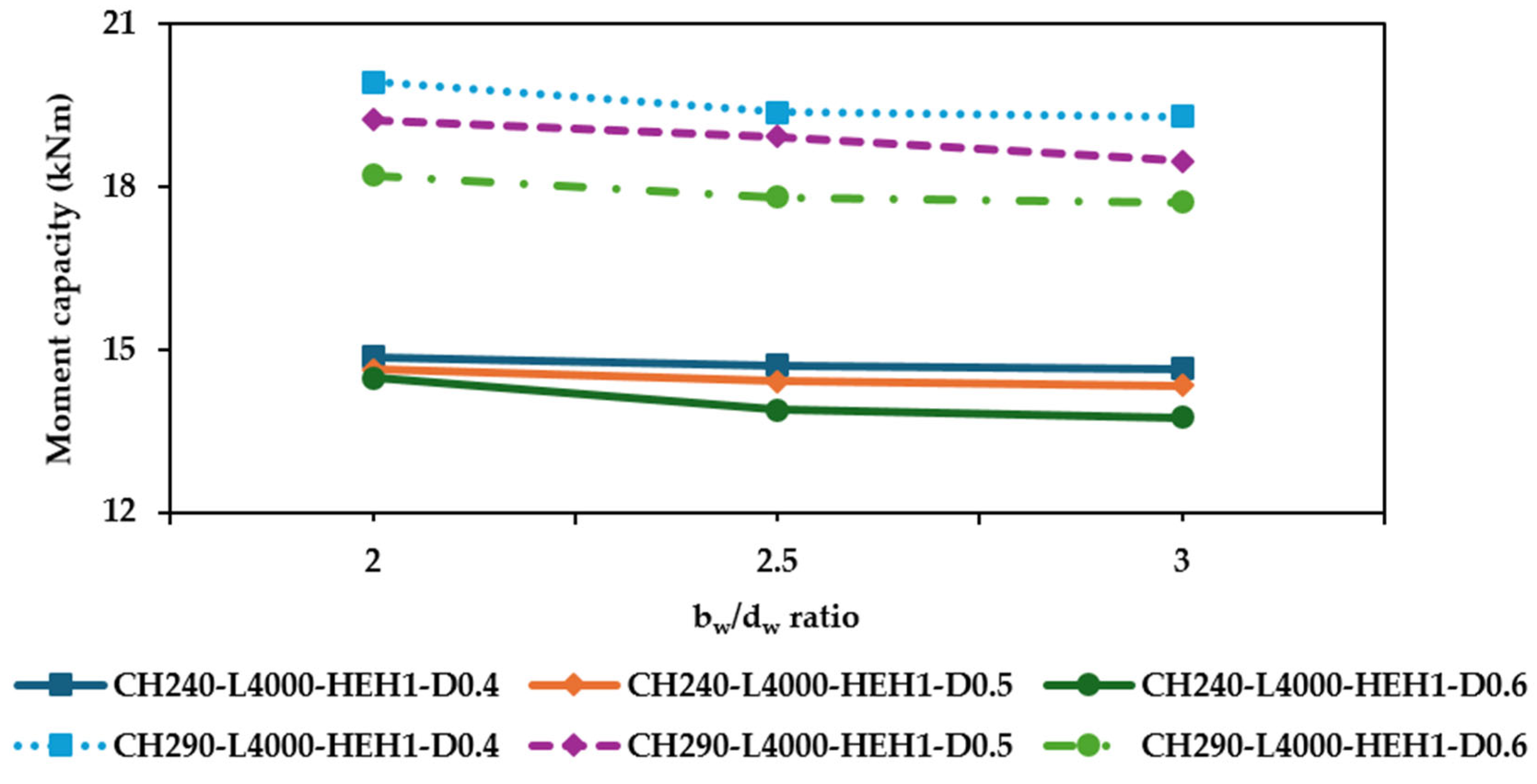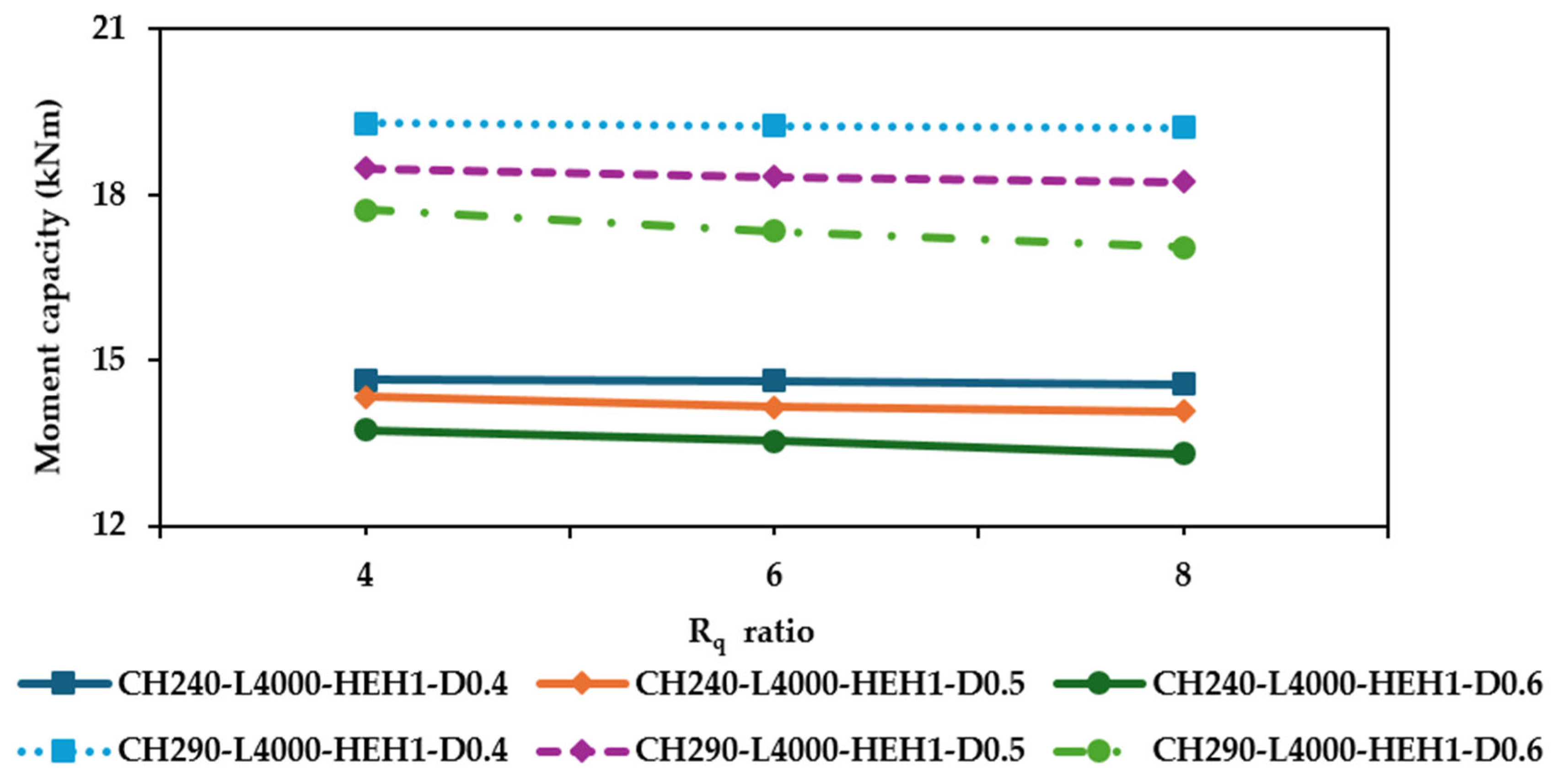 - Reliability verification of proposed formulations: The performance of the proposed DSM formulations for HCFSBs with HEH was verified through reliability analysis. The outcomes confirmed that the revised equations yield dependable estimates of flexural strength within acceptable safety margins.
