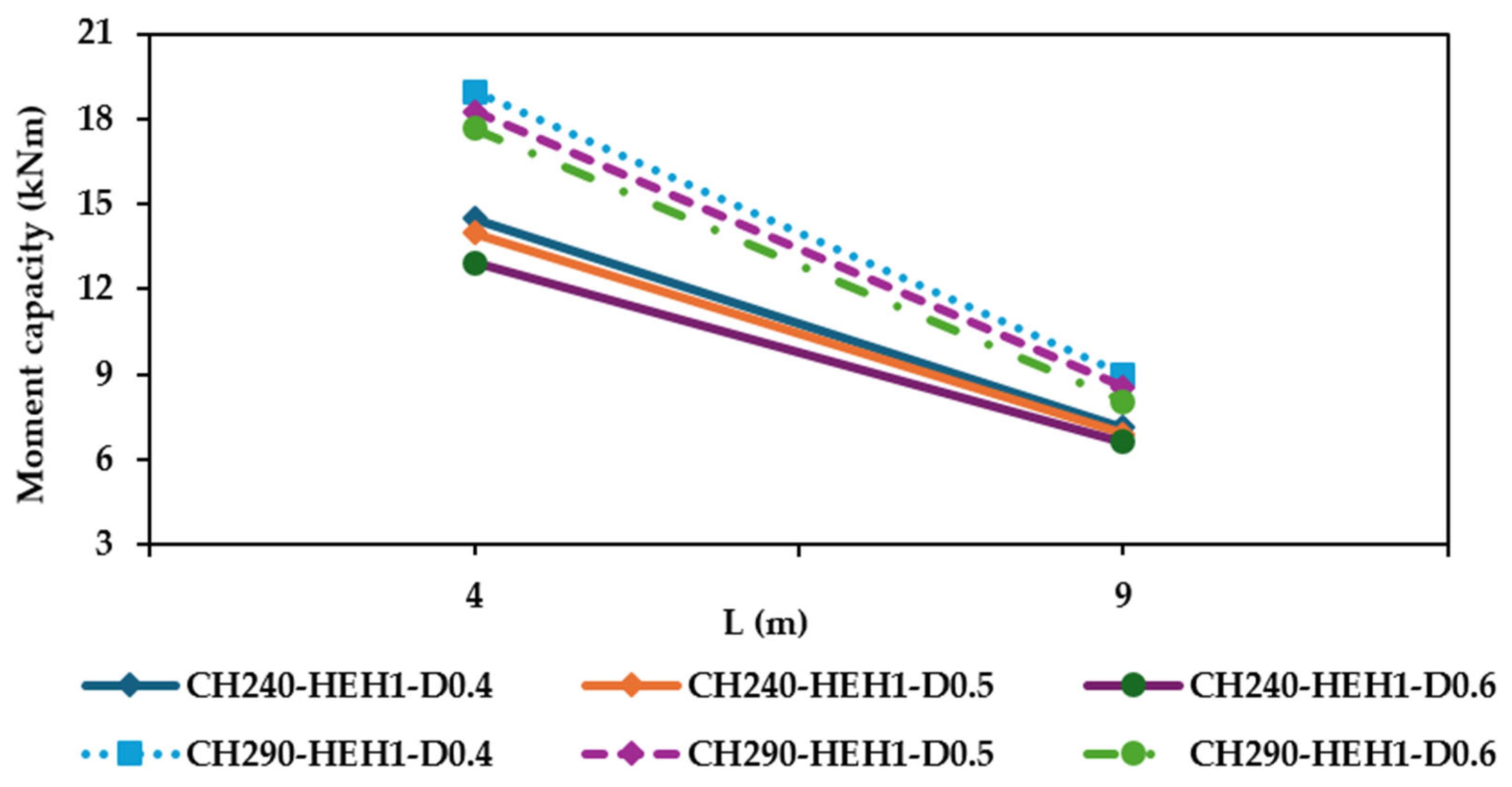 | Specimen | FEA-Based Flexural Strength (MFEA (kNm)) for CFSCB’s Featuring HEH | |||||||||