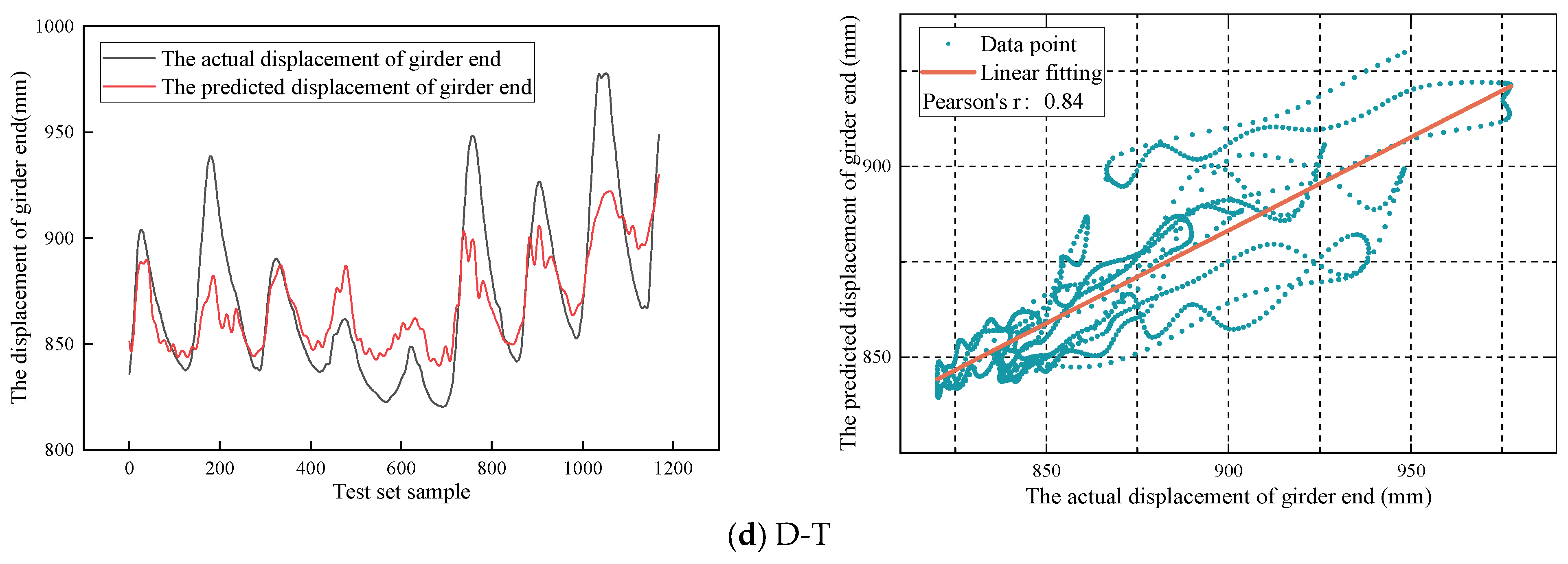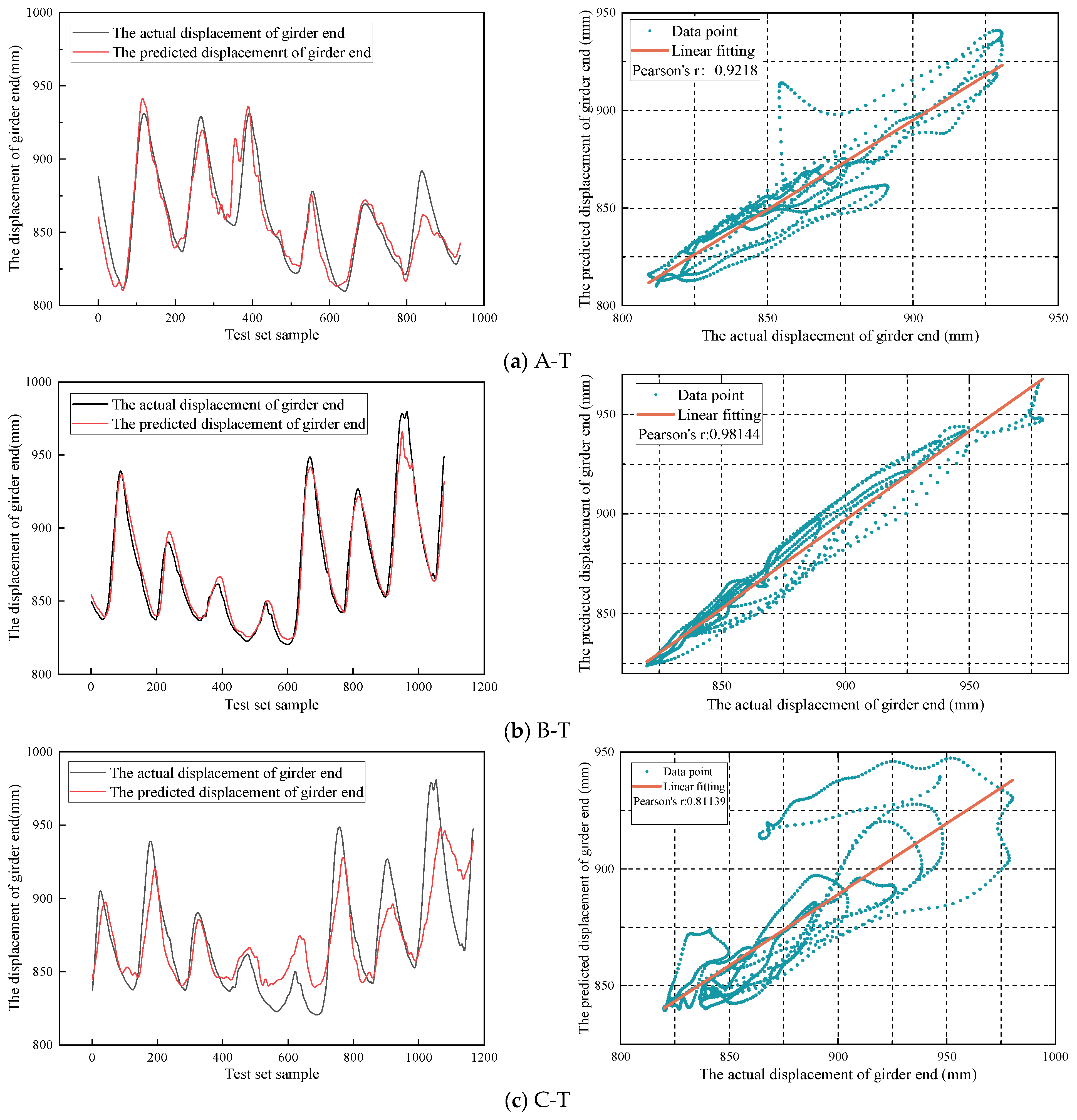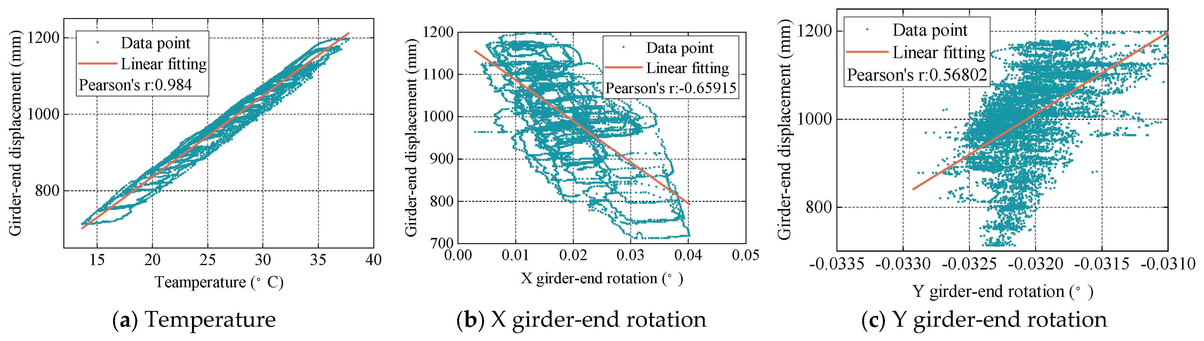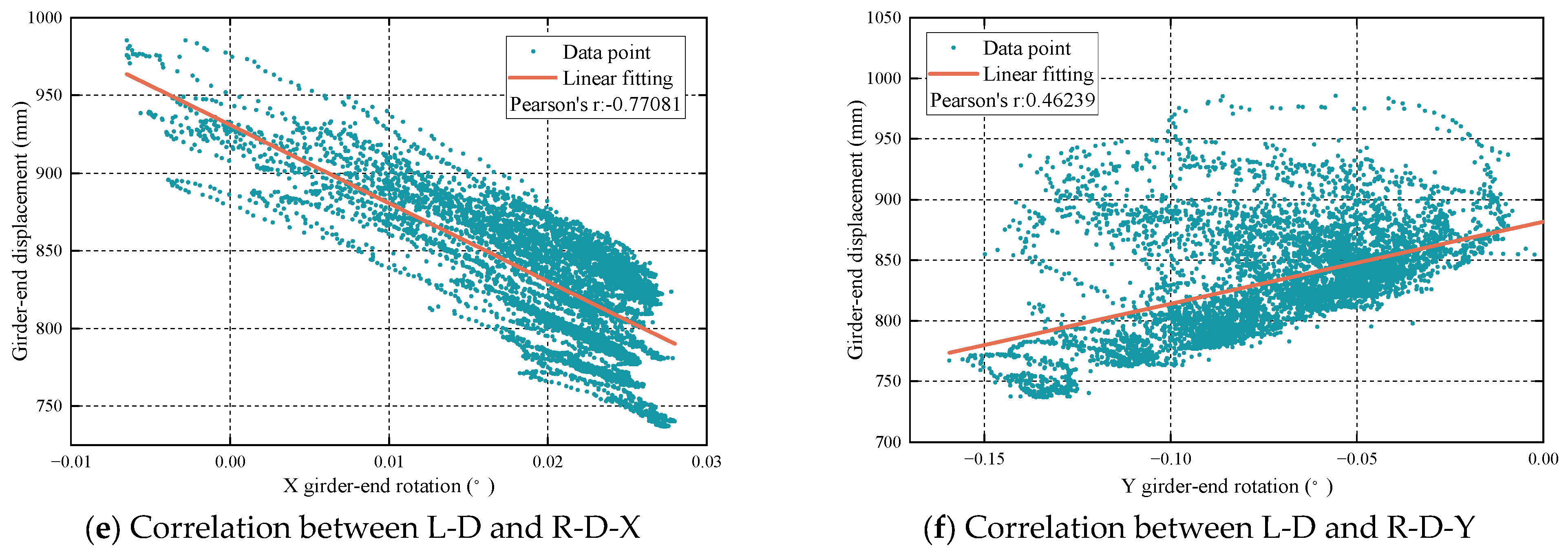 The correlation evaluation model analyzes the correlation between beam end displacement and temperature by linear regression analysis. The fitting equation of linear regression analysis is as follows: