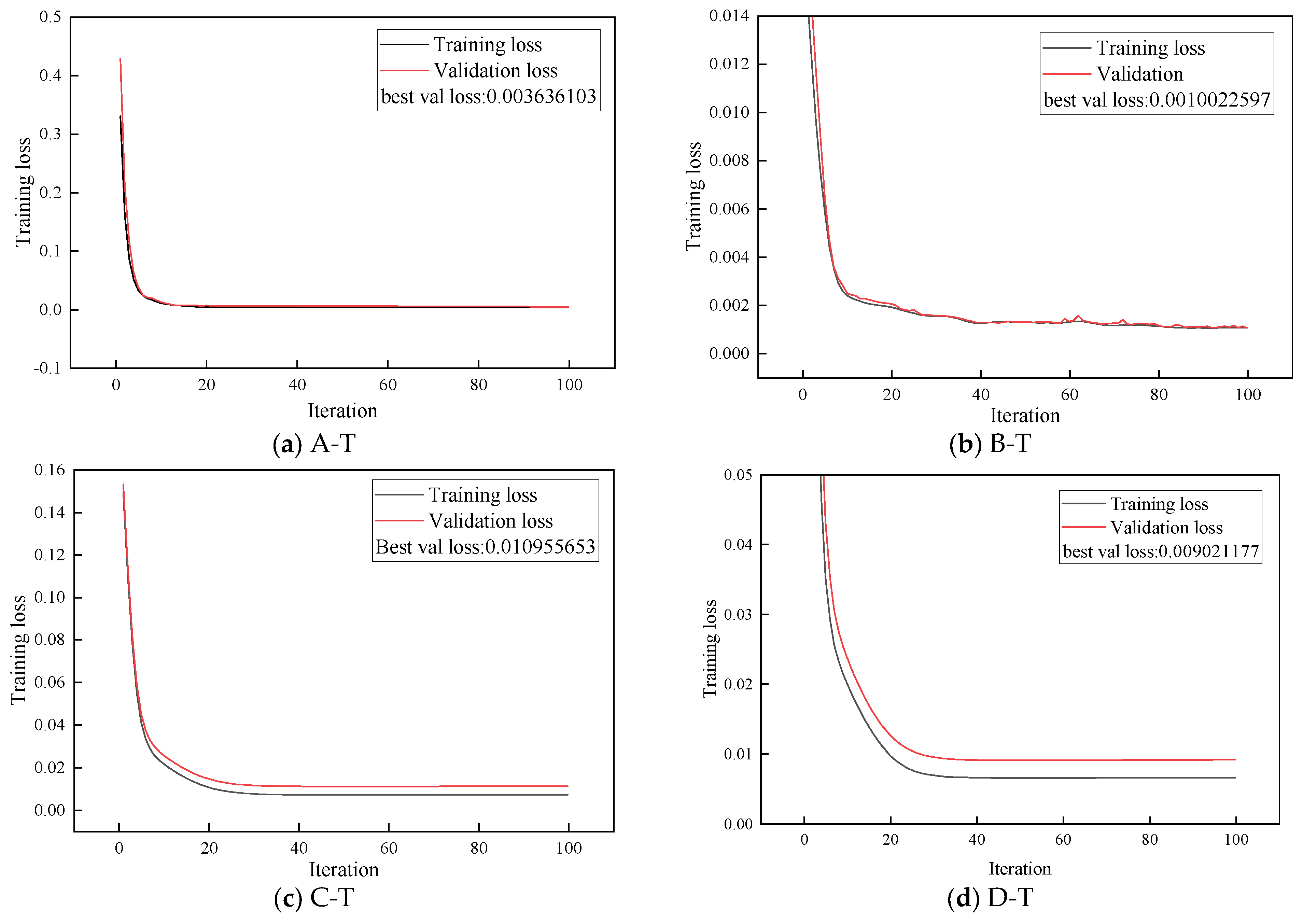 The training loss curves and prediction results are obtained after 100 iterations based on the parameter adjustment results in