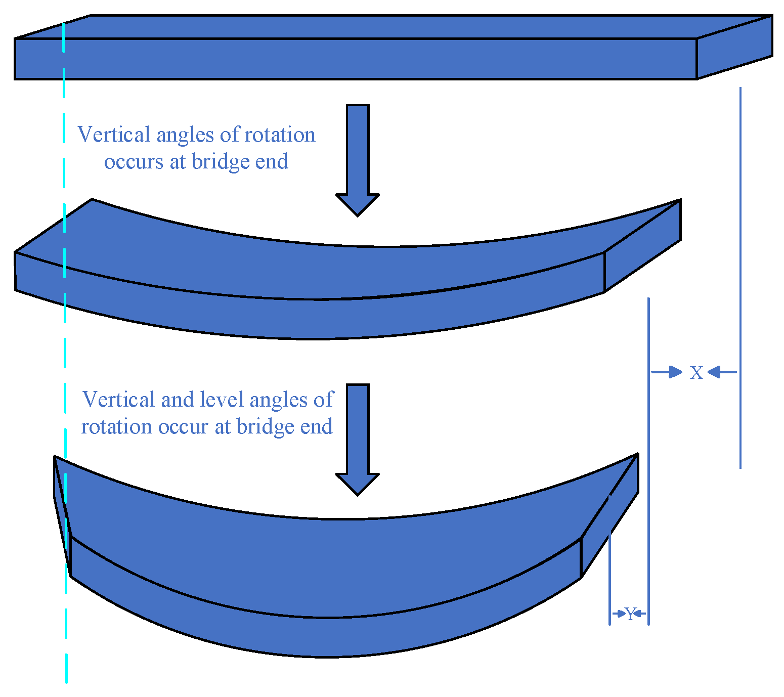 Figure 2. When the rotation angles at both ends change, the longitudinal displacement in the length direction will also change. Therefore, it can be thought that RDBD can be used to predict LDBD.
