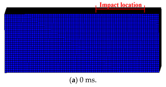 Damage evolution of H2-C50-L1: (a) 0 ms; (b) 10.50 ms.