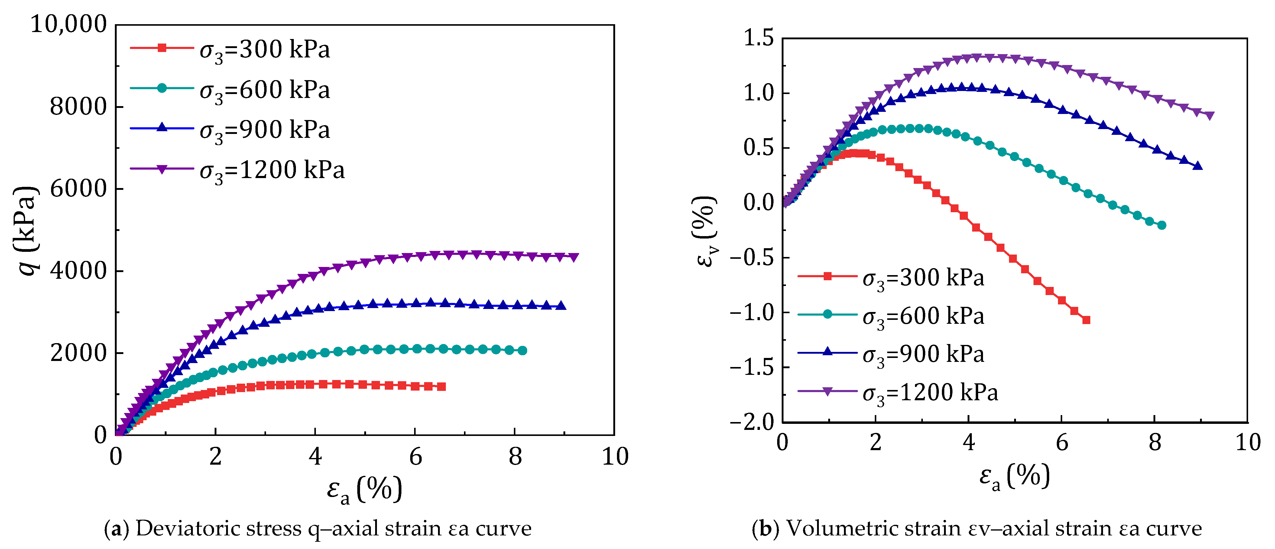 - Tang, X.Y.; Feng, C.Z.; Ren, B.; Zhou, C.H.; Peng, C. Experimental study on the triaxial compressive properties of UHPC with coarse-aggregate steel-slag micro-powder under different confining pressures. Sci. Rep. 2025, 15, 12343. [Google Scholar] [CrossRef]
