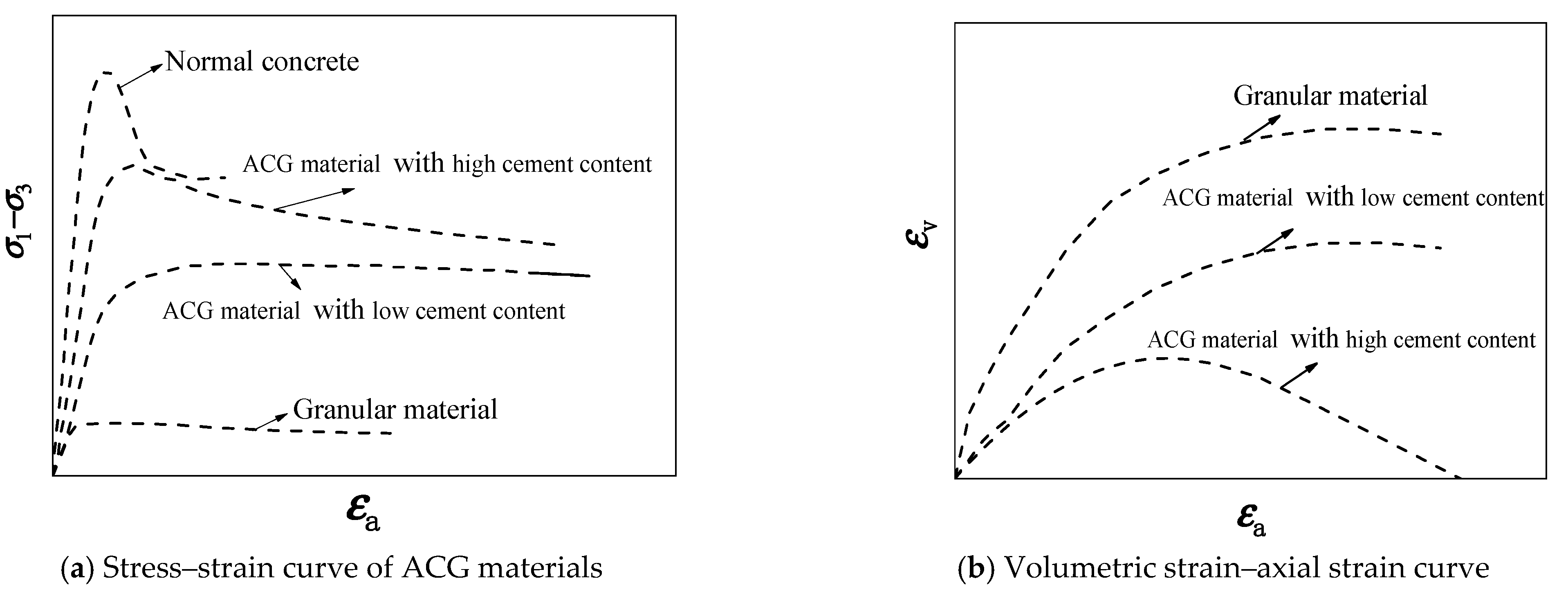 - Wu, M.X.; Du, B.; Yao, Y.C.; He, X.F. An Experimental Study on Stress-strain Behavior and Constitutive Model of Hardfill Materials. Sci. China Phys. Mech. 2011, 54, 2015–2024. [Google Scholar] [CrossRef]