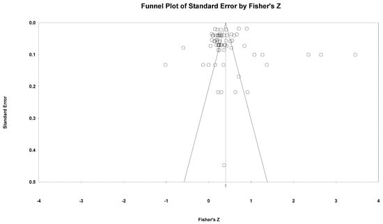 Funnel plot of standard error by Fisher’s Z. (source: Author).