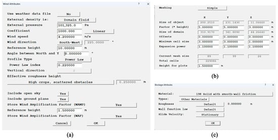 - PHOENICS cannot resolve latent heat exchange, so the evaporative cooling effect of small waterbodies—shown in field work to lower air temperature [73]—was omitted; ENVI-met or similar tools will be used to couple this process with airflow.