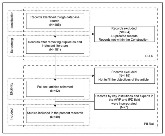 This study conducts a comprehensive literature review on AWP and IPD, following a modified version of the methodology proposed by [16]. A two-phase methodology was adopted, as illustrated in Figure 3.