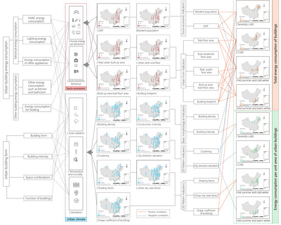 Correlation requires exploration. Urban form research is a popular topic in the field of urban planning. Many scholars have studied urban form at the macroscopic scale, but there are fewer studies that consider urban morphology and urban energy consumption at the same time at the macroscopic scale, and many studies summarize the relevant laws through statistical models but do not explain the deep internal mechanism [37,38,39,40,41,42,43,44,45].