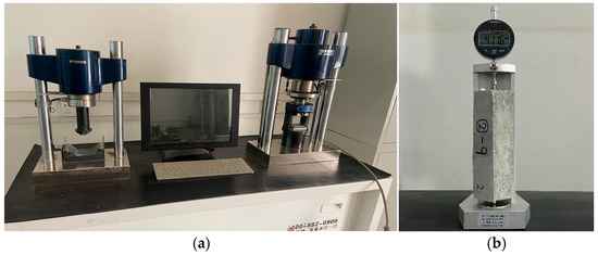 Tests for mechanical properties and drying shrinkage of foam concrete: (a) compressive and flexural testing machine; (b) drying shrinkage test.