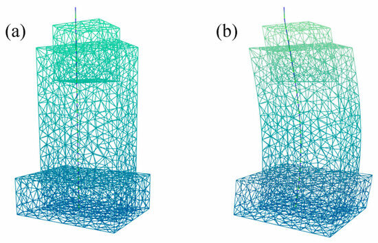 Demonstration of skeletal animation for buildings. (a) The initial bone structure. (b) The model deformation driven by the bones in a dynamic scenario.