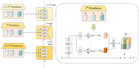 Warehouse sharing enhances computational efficiency and reduces model parameters by allowing convolutional kernels to share parameters across different kernels. By organizing multiple kernels into a unified “repository” and applying linear combinations of these kernel units, the model can flexibly adapt to varying input features, thereby minimizing redundant computation while maintaining or even enhancing feature extraction capability. This parameter-sharing mechanism strengthens the model’s representational power, particularly in complex tasks, improves generalization performance, and further alleviates computational overhead.