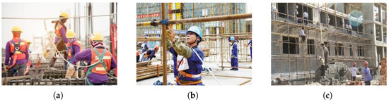 Sample images from the SHWD dataset. (a–c) Partial images showing different scenarios and variations in helmet-wearing and non-helmet instances.