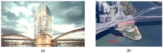 High-rise description: (a) building visualization (B&L GROUP, Hamburg, Germany); (b) construction site (GOOGLE EARTH).
