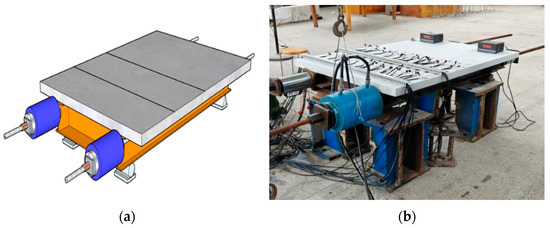The straight-web box-section composite girders were tested under simply supported conditions with one fixed hinge and one movable roller support, as shown in Figure 8. Structural testing was conducted at the Hunan Institute of Science and Technology Structures Laboratory (China). Axial load was applied by tensioning threaded steel bars positioned on both sides of the steel girder webs at a force-controlled rate of 10 N/s. The girders were subjected to a two-phase loading protocol:
