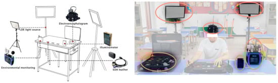 Twenty-four hours before the experiment, all the participants received a unified experimental instruction and operation training, which included the experimental procedure, measurement method, and data usage range, to enhance the experimental cooperation and data validity. To reduce the interference of external variables on physiological signals, the research team asked all participants to avoid ingesting substances that may affect their nervous system, such as alcohol, nicotine, or other psychoactive drugs, for 24 h before the experiment. In addition, all the participants and their guardians signed an informed consent form and were clearly informed that the physiological data and image information they provided would be used only for the purpose of this study and would be handled confidentially in strict accordance with ethical norms. This study was approved by the Ethics Review Committee of the School of Architecture and Planning, Shenyang Architecture University (Ethics Project No. 2025SJZU-A008). After measuring the classroom space and communicating with the students, the daily activities of the students were summarised (refer to Table 4), and the time of the experiment was determined; the experiment was performed every day at 8:00–10:00 and 13:00–17:00 because this is the time when students read and study on a daily basis.