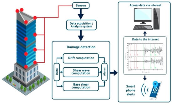 - Sivasuriyan, A.; Vijayan, D.S.; Górski, W.; Wodzyński, Ł.; Vaverková, M.D.; Koda, E. Practical Implementation of Structural Health Monitoring in Multi-Story Buildings. Buildings 2021, 11, 263. [Google Scholar] [CrossRef]